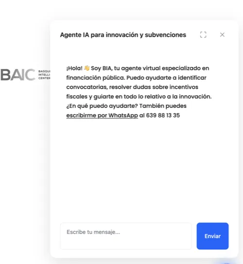 BIA es nuestro agente de IA especialista en innovación y financiación pública,